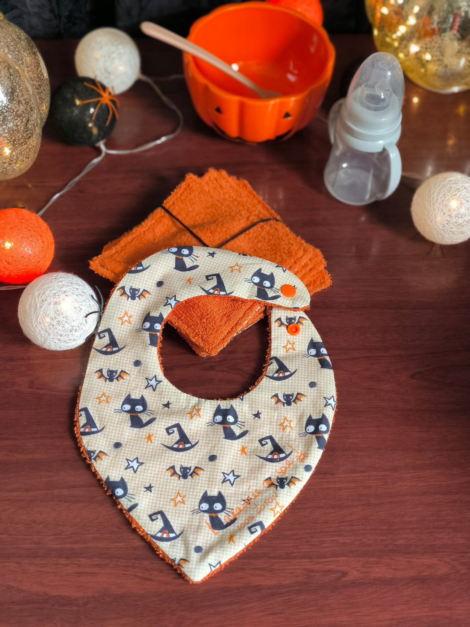 Duo bavoir et lingettes lavables - petits chats sorciers